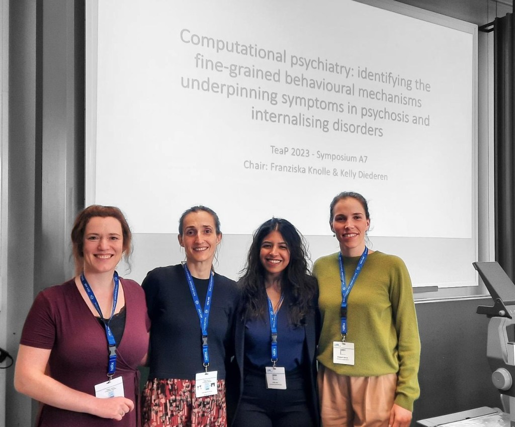 March 27, 2023: At the TeaP 2023 in Trier, we gave a super-well attended symposium together with Kelly Diederen (KCL) on Computational Psychiatry: Identifying the fine-grained behavioural mechanism underpinning symptoms in psychosis and internalising disorders. We enjoyed it very much!
