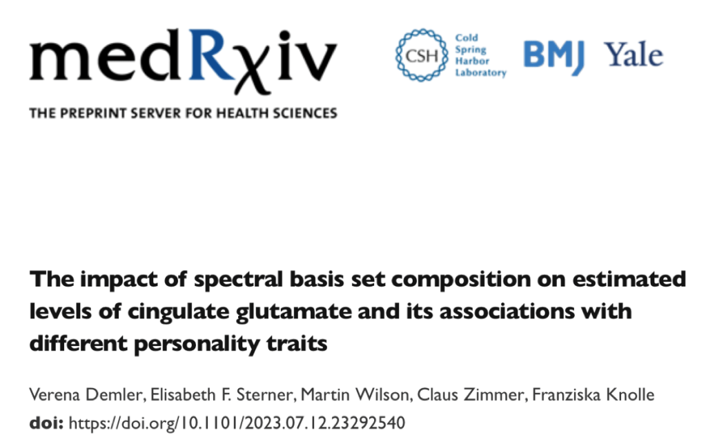 July 18, 2023: We are very happy to announce that Verena published her second pre-print on the impact of basis set composition for the analysis of glutamate concentrations from MR spectroscopy data. 🥂🎉