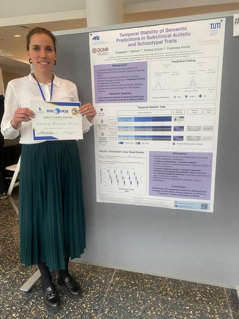 March 9, 2025: Elisabeth published a preprint together with Andrea Greve from Cambridge University showing that semantic predictions are less stable in individuals with increasing schizotypal and autistic traits, importantly those alterations are not explained by memory differences!💡🎉