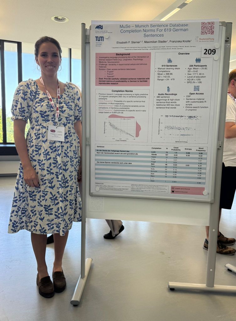 October 26, 2025: Elisabeth published the preprint for our Munich Sentence (MuSe) Database – an interactive data base for sentence stimuli with audio-recordings and linguistic features! 🗯️🎉
